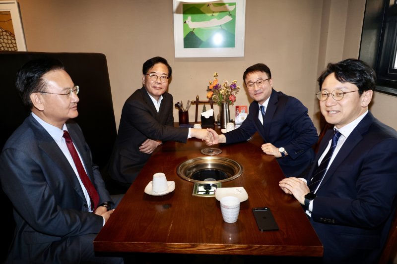 한병도 더불어민주당·송언석 국민의힘 원내대표를 비롯한 여야 원내지도부는 이날 4차례 연속 회동 끝에 추경 처리 시기와 4월 임시국회 일정을 정했다. 여야는 우원식 국회의장 주재 회동을 시작으로 비공개 오찬과 2차례 회동을 가졌다.