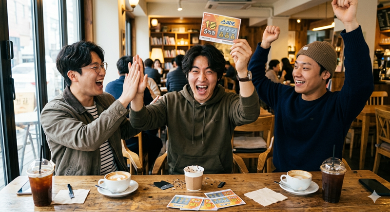 세 사람이 복권을 모아 확인한 결과 당첨금은 총 1만원이었다. 마침 인근에 복권 판매점이 있어 스피또1000 10장으로 교환했다.