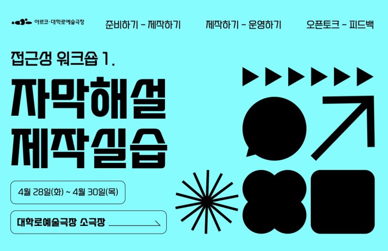아르코는 다음달 28일부터 30일까지 사흘간 서울 종로구 아르코·대학로예술극장(예술극장) 소극장에서 '자막해설 제작 실습' 워크숍을 개최한다.