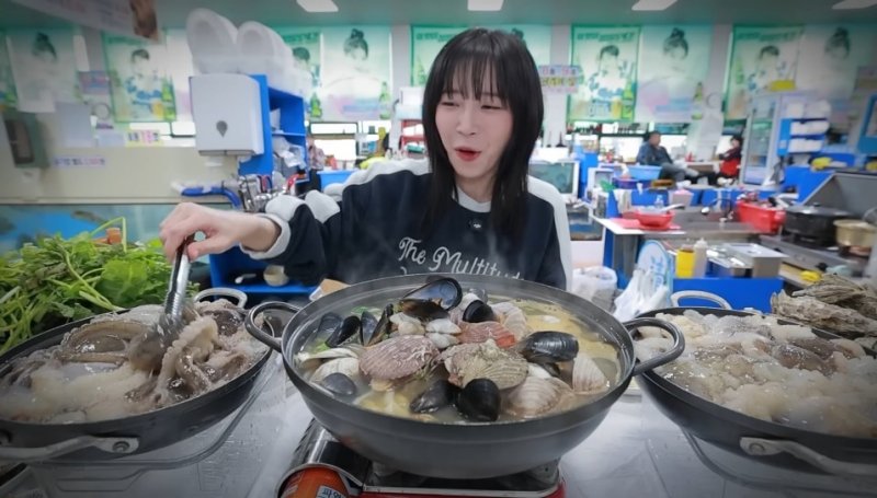 쯔양은 갯벌 체험 이후에는 신선한 해산물로 만든 지역 특산 음식을 맛보며 먹방 콘텐츠를 선보였다.