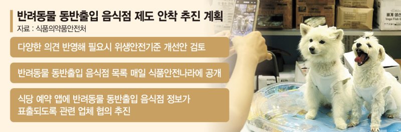 식품의약품안전처가 3월부터 반려동물 동반출입 음식점 제도를 운영한 이후 반려동물 동반 출입 음식점 등록 업소수가 빠르게 늘고 있다. 이 제도는 원칙적으로 금지됐던 식당과 카페 등의 개, 고양이를 비롯한 반려동물 동반 출입을 제한적으로 허용하는 것이 골자다.