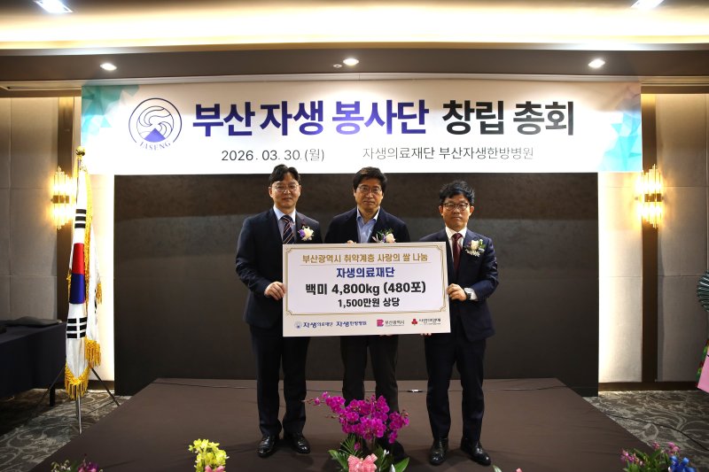이날 행사는 부산자생봉사단 창립식과 백미 전달식을 함께 진행해 지역사회 나눔을 실천하는 자리로 마련됐다.