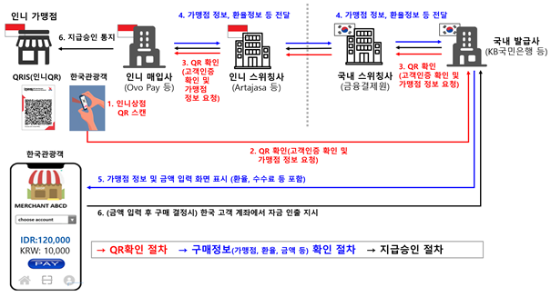 발급사인 금융기관은 해당 QR 정보를 통해 고객정보 등을 확인하고 금결원에 인도네시아 가맹점 정보를 요청한다. 반대로 인도네시아 매입사는 금결원을 거쳐 가맹점 정보와 환율 정보 등을 발급사에 전달한다.