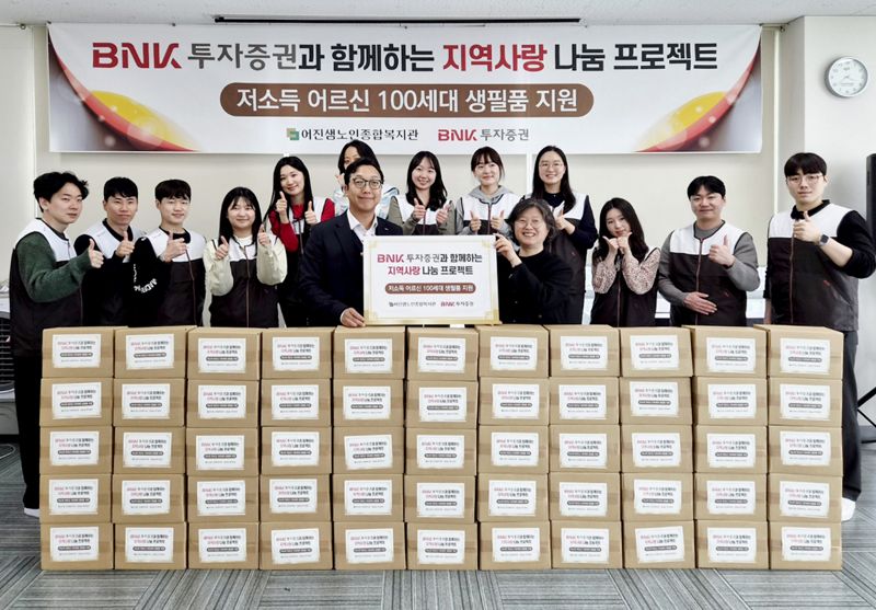 [파이낸셜뉴스] BNK투자증권은 지난달 31일 부산 해운대구 소재 어진샘노인종합복지관에서 지역 내 취약계층 어르신을 지원하기 위한 ‘지역사랑 나눔 프로젝트’를 실시했다고 1일 밝혔다.