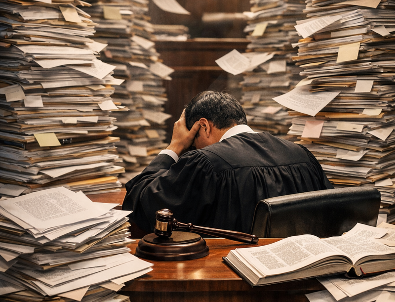 사건의 복잡도는 기록 분량 증가로 나타난다. 서울중앙지법 1심 민사합의부 사건의 평균 기록면수는 2024년 1362면으로 2021년(927면)보다 약 47% 증가했다. 같은 기간 처리 사건 수는 1만1410건에서 7491건으로 줄었지만 사건당 기록은 오히려 늘어난 셈이다. 형사합의부 사건 기록도 2024년 평균 2779면으로 전년(1280면)보다 2배 이상 증가했다.