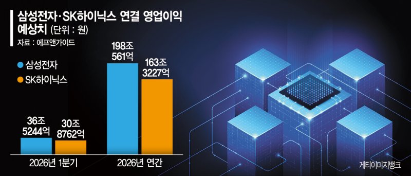 이 같은 흐름이 이어질 경우 예상치 기준 삼성전자가 연간 약 198조원, SK하이닉스가 약 163조원의 이익을 거두며 합산 '360조원 시대' 진입도 가능할 것이란 해석이 나온다.
