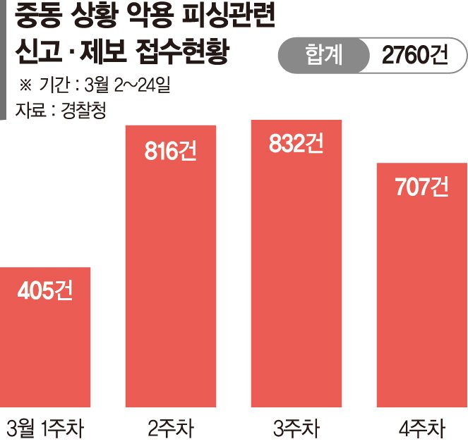 최근 한달 '중동관련 피싱' 신고 2760건