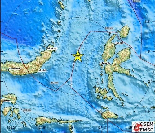 2일 유럽지중해지진센터(EMSC)에 따르면 2일 오전 7시48분 인도네시아 북말루쿠 해역에서 리히터 규모 7.4 지진이 발생했다. 진앙은 북위 .17도, 동경 126.28도로 지진 발생 깊이는 35km다.