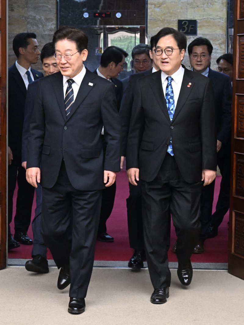이날 환담에서는 추경의 시급성에 대한 공감대도 확인됐다. 이 대통령은 "세수 여건이 개선돼서 추경을 할 여력이 됐고 추경을 통해 국민 삶을 안정시킬 필요가 어느 때보다 높기 때문에 긴급하게 추경을 편성했다"며 "국회에서도 이런 사정을 감안해서 신속하게 심의하고 처리해 주시려고 노력하는 점에 대해 매우 감사하다"고 말했다.