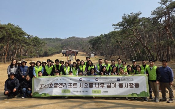 [파이낸셜뉴스] 조선호텔앤리조트는 식목일을 앞둔 2일 경기 고양시 서오릉 일대에서 임직원들과 함께 나무 심기 봉사활동을 진행했다고 밝혔다.