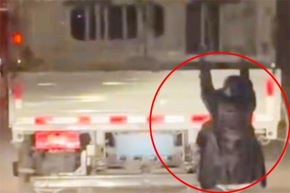 당시 현장 영상을 보면 이 여성은 아무런 안전장치도 없이 화물차 뒷부분의 적재함 문을 두 손으로 꽉 붙잡은 상태로 트럭 뒤에 위태롭게 매달려 있었다.