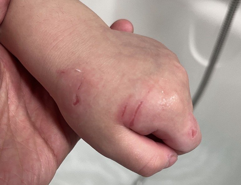 해당 사진에는 여러 곳에 긁힌 아동의 손이 담겼다.