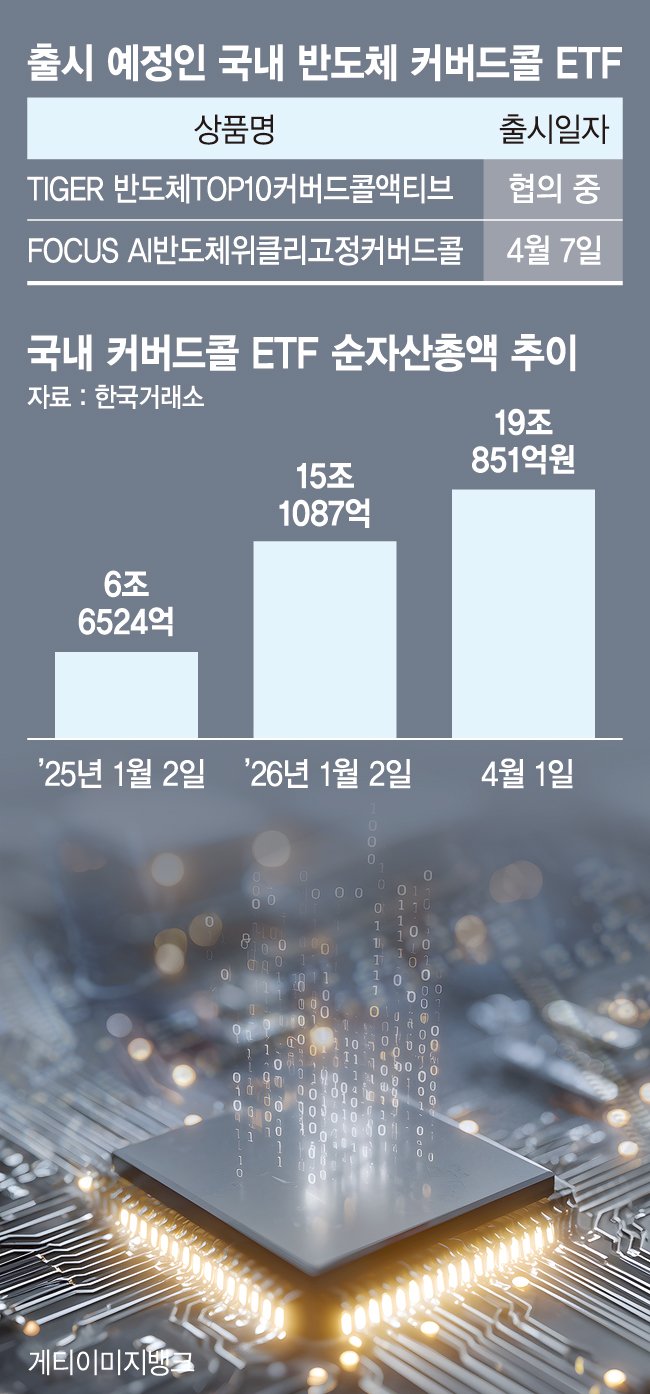 이에 콜옵션 매도 비중을 30%로 낮춘 동시에 국내 반도체 산업에도 투자하는 ETF도 출격을 앞두고 있다. 브이아이자산운용의 'FOCUS AI반도체위클리고정커버드콜'은 이달 7일 상장될 예정이다.