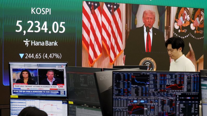 대이란 타격 예고에 코스피 4%↓…종전 기대 꺾이며 매도 사이드카