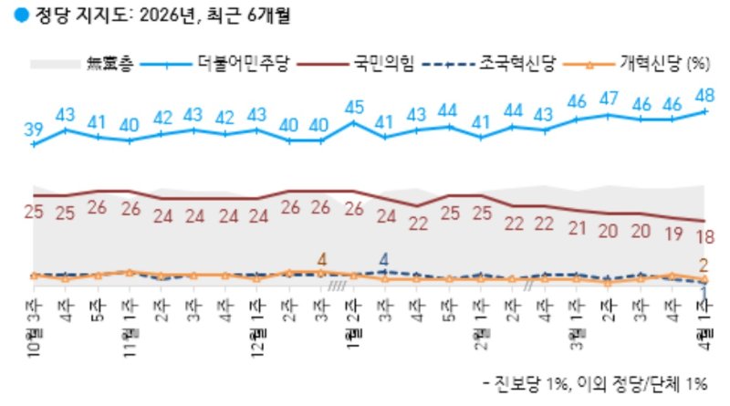 개혁신당2%, 조국혁신당·진보당 1%…무당층은 28%
