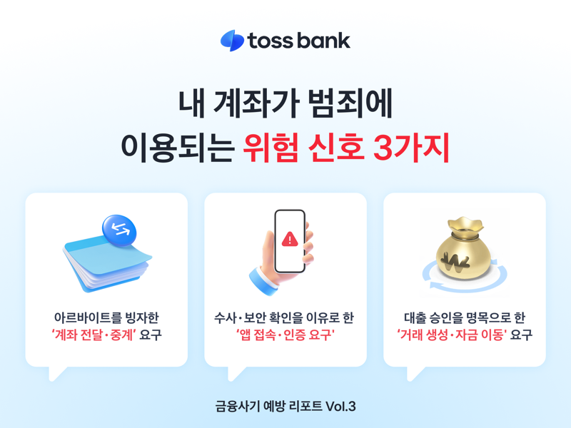 토스뱅크 금융사기대응팀 관계자는 “최근 사기는 피해자의 계좌를 범죄에 활용하는 구조로 진화하고 있다”며 “아르바이트나 대출 과정이라고 생각했더라도, 본인 계좌로 타인의 자금을 받거나 전달하는 순간 금융사기에 연루될 수 있다”고 설명했다. 이어 “정상적인 기업이나 금융기관은 개인 계좌를 이용해 자금을 중계하도록 요구하지 않으며 당연히 이체 한도 등도 확인하지 않는다”며 나도 모르는 사이에 범죄의 도구로 이용당하지 않도록 각별한 주의가 필요하다고 강조했다.