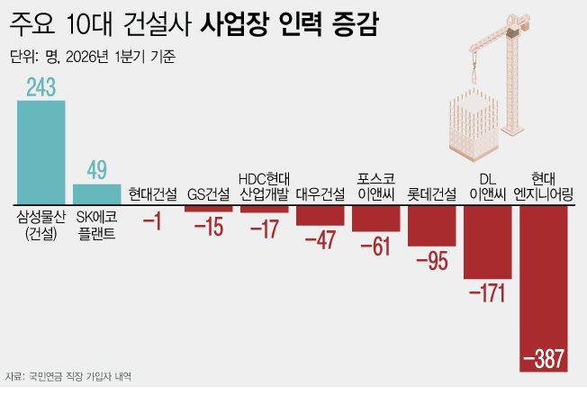 시공능력 상위 10대 건설사, 1분기 인력 500여 명 감소