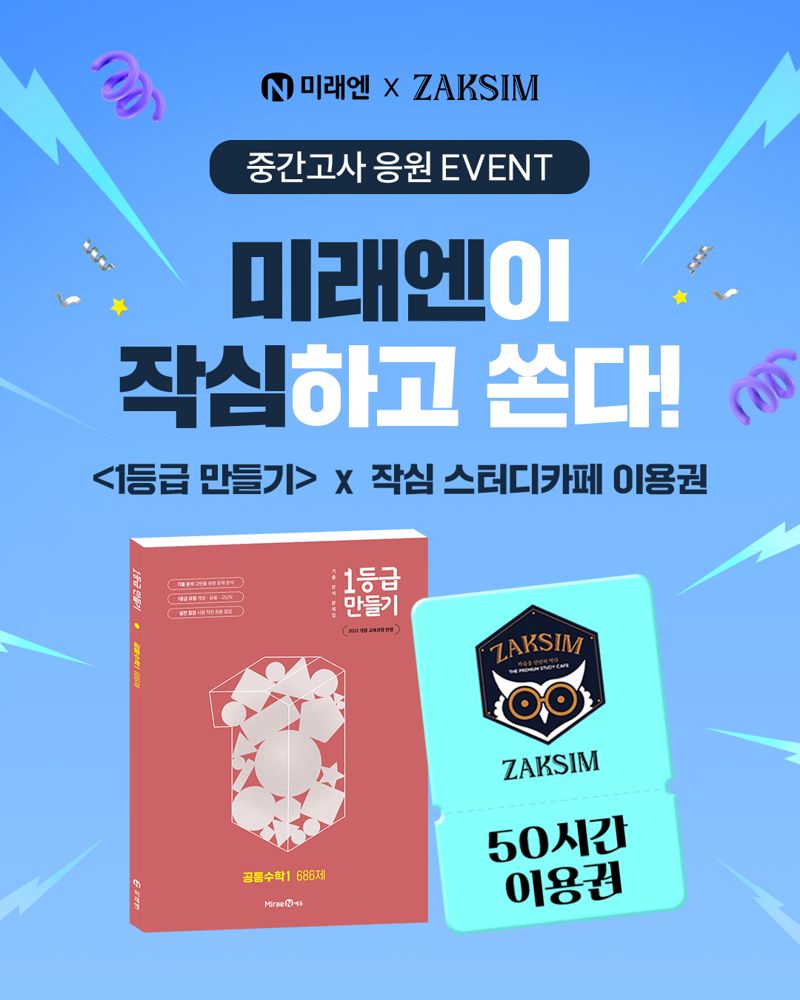 [파이낸셜뉴스] (주)미래엔이 중간고사 시즌을 맞아 작심 스터디카페와 협업해 전국 21개 지점에 고등 내신 대비서 '1등급 만들기' 샘플북을 비치하는 등 대대적인 학습 지원에 나섰다. 또한, 오는 23일까지 온라인 댓글 이벤트를 통해 교재와 스터디카페 이용권을 증정하며 학생들의 몰입도 높은 학습 환경 조성을 지원할 계획이다.