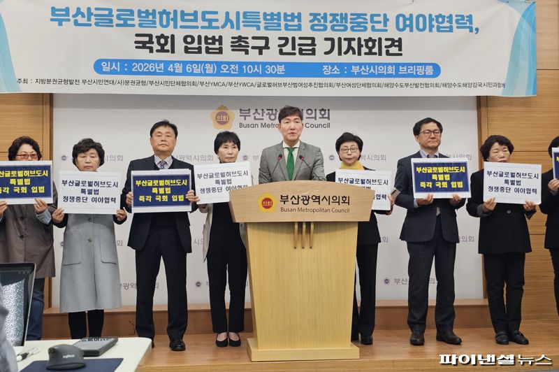 이어 “국회 입법 상황을 두고 지방선거를 의식해 상호 책임 공방에 치중하는 정치권의 행태는 부산시민과 유권자의 심판에 직면할 것”이라며 “이럴 때일수록 최초 발의 때의 초심으로 돌아가 여·야가 긴밀한 협력으로 순조로운 국회 입법에 나설 것을 거듭 촉구한다”고 호소했다.