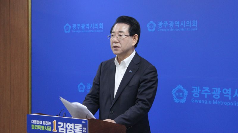 【파이낸셜뉴스 광주=황태종 기자】김영록 더불어민주당 전남광주통합특별시장 경선 후보가 오는 12~14일 치러지는 결선 투표를 앞두고 6일 광주광역시의회 브리핑룸에서 기자회견을 열어 "특별시 운영에 탕평·균형을 제1 원칙으로 삼겠다"라고 말했다.