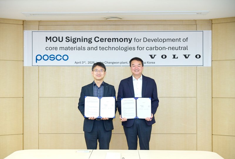 볼보그룹코리아는 지난 3일 창원공장에서 포스코와 '고성능 소재 및 제조기술 공동 연구개발' MOU 협약식을 진행했다고 6일 밝혔다. 행사에는 강호진 볼보그룹코리아 연구개발부문 부사장과 이규영 포스코 기술연구원 솔루션연구소장 등이 참석했다.