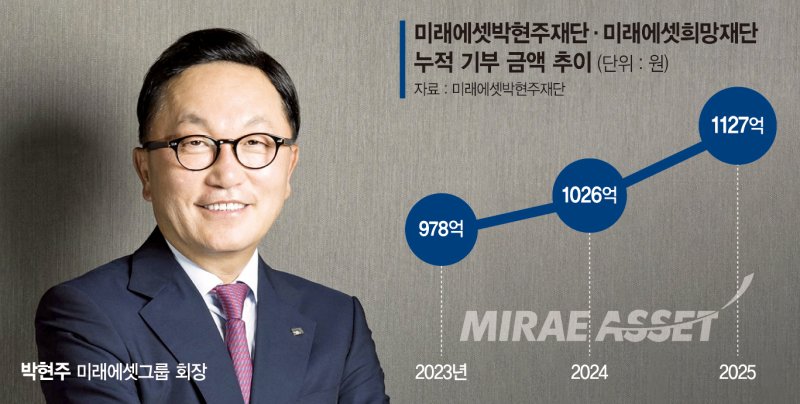 이번 기부금은 미래에셋그룹 공익법인을 통해 인재 육성 사업에 활용될 예정이다. 미래에셋박현주재단과 미래에셋희망재단은 장학사업과 청소년 교육 프로그램, 글로벌 문화체험 등 다양한 사회공헌 활동을 진행해왔다. 두 재단은 국내뿐 아니라 해외에서도 장학생 선발과 교육 프로그램을 운영하며 활동 범위를 넓혀왔다.