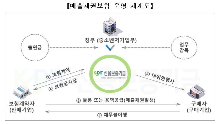 매출채권보험은 신용보증기금이 중소벤처기업부에서 업무를 수탁받아 운영하는 공적 보험제도다. 보험에 가입한 기업은 물품이나 용역을 외상 판매한 후에 거래처로부터 대금을 회수하지 못했을 때 미수금의 최대 90%까지 보장받을 수 있다.