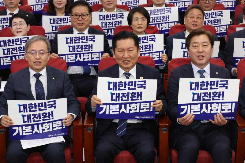정 대표는 이날 서울 여의도 국회에서 열린 기본사회위원회 3기 출범식에 참석해 "기본소득 정책이 있었기 때문에 이재명 대통령이 대통령이 될 수 있었다"며 이같이 말했다. 정 대표는 당연직으로 위원장을 맡고 있으며 수석부위원장은 송기헌 의원이다.