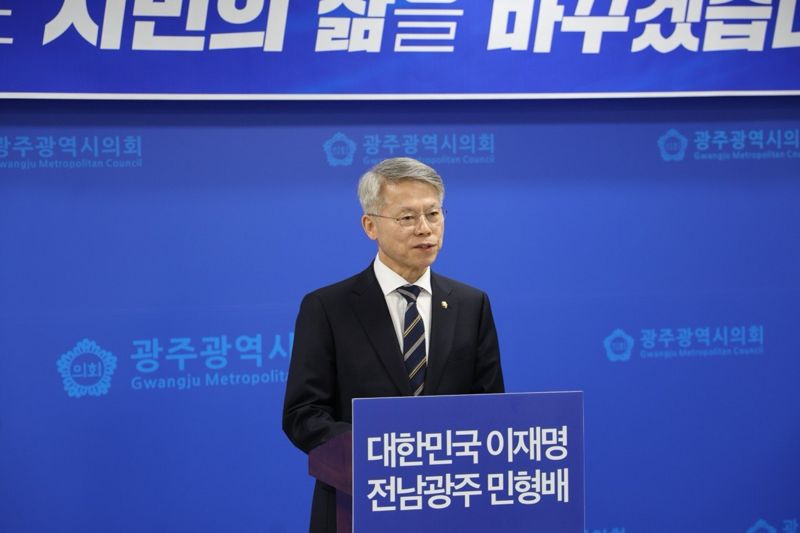 【파이낸셜뉴스 광주=황태종 기자】민형배 더불어민주당 전남광주통합특별시장 경선 후보가 7일 광주광역시의회에서 기자회견을 열고 통합특별시 행정 운영 구상과 결선 승리 의지를 밝혔다.