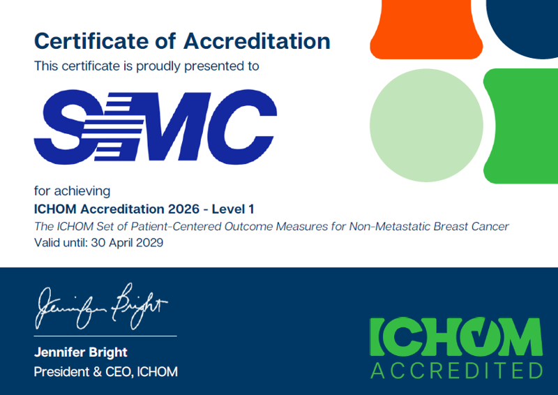삼성서울병원 암병원은 비전이성 유방암 분야에서 ICHOM 1단계 인증을 획득했다. 1단계 인증은 의료진 보고 결과(CRO)와 환자자기평가결과(PRO) 지표 가운데 50% 이상을 체계적으로 측정하고 관리하는지를 평가한다. 이번 인증으로 삼성서울병원 암병원은 유방암 환자의 삶의 질 데이터를 국제 기준에 맞춰 수집·관리하고 있음을 공식 인정받았다.