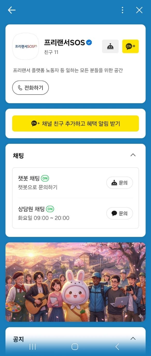 프리랜서SOS는 카카오채널을 통해 운영된다. 월요일부터 토요일까지 별도의 신청 절차 없이 이용 가능하다.
