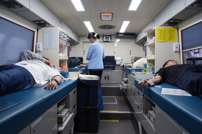 전날 서울 마포구 공영홈쇼핑 사옥 앞에 준비된 헌혈 버스에서 임직원 50여명이 헌혈에 참여했다. 혈액은 수혈이 필요한 환자를 위해 각급의 의료기관에 공급될 예정이다.