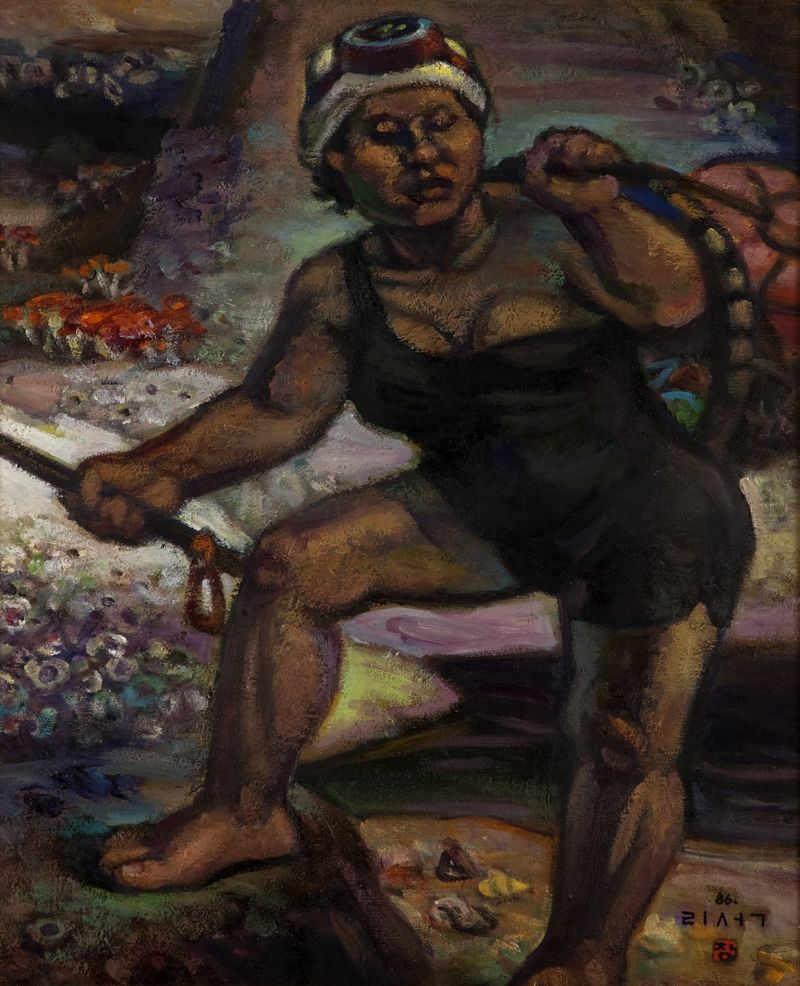 이번 전시의 초점은 해녀를 여성 노동의 인물이 아니라 제주의 생명성과 여성성을 압축한 존재로 바라본 데 있다. 미술관은 장 화백이 척박한 환경에서도 삶을 버티는 해녀에게서 “가장 꾸밈살 없고 건강한 생활인의 표본”을 봤다고 설명한다. 거친 물질과 생계의 무게를 견디면서도 삶의 기운을 잃지 않는 해녀의 모습이 장 화백에게는 제주의 원형적 생명력으로 읽힌 셈이다.