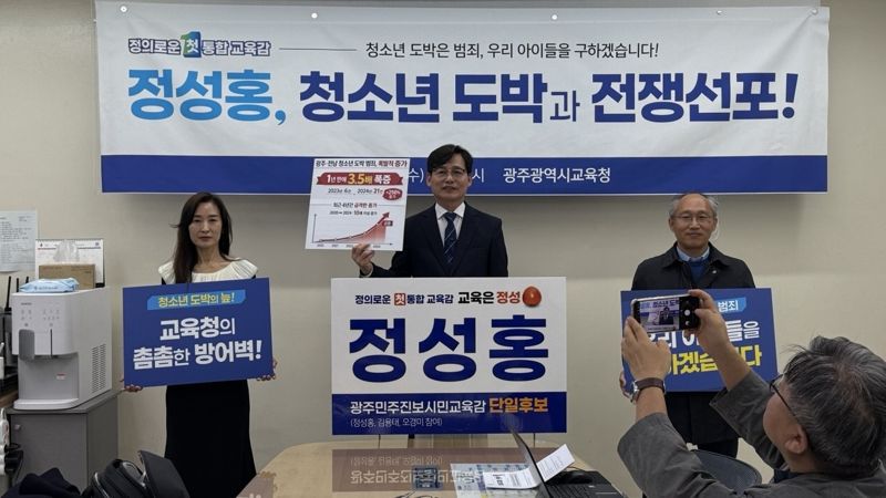 정 후보는 이날 "최근 광주·전남 지역에서 청소년 도박이 빠르게 확산되고 있으며, 단순 일탈을 넘어 절도·사기·폭력 등 2차 범죄로까지 이어지고 있다"면서 "청소년 도박은 더 이상 일부 학생의 문제가 아니라 교육과 지역사회를 위협하는 구조적 위기"라고 강조했다.