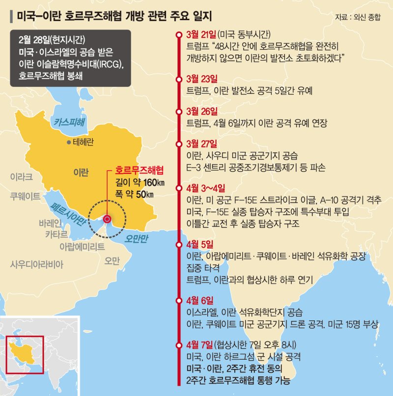 미국의 대이란 공격 중단과 맞교환된 호르무즈해협 개방조치는 국제사회가 요구해 온 '무조건적 자유항행' 원칙과는 거리가 멀다. 이란은 지난 2월 28일 미군 공격 직후 압도적인 군사력 격차를 만회하기 위해 세계 경제를 볼모로 잡는 비대칭 전략으로 해협을 전면 통제했고, 이 전략의 유효성을 확인한 만큼 통제권을 쉽게 놓지 않겠다는 의도를 명확히 드러내고 있다.