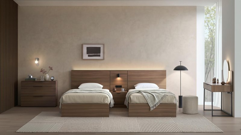 스와니에는 프랑스어로 '정성 들인'이라는 의미다. 특급 호텔 객실과 같은 감각적이고 고급스러운 분위기를 원하는 신혼 부부를 위해 절제된 디자인과 안정적인 구조를 갖췄다. 사용자의 라이프스타일에 따라 트윈 베드로도 구성이 가능해 개인화된 수면 환경을 제안하는 것이 특징이다. 스와니에 트윈 베드는 두 개의 싱글 침대를 결합해 두 사람이 분리된 수면이 가능하다.