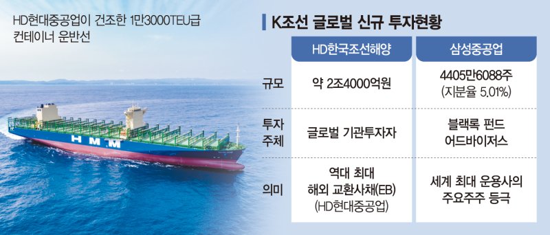 글로벌 자본시장 '큰 손'들의 K-조선 베팅이 본격화되고 있다. HD현대중공업 주식을 기초로 한 약 2조4000억원 규모의 해외 교환사채(EB) 발행에 투자자 주문이 쏟아진 가운데, 세계 최대 자산운용사인 블랙록은 삼성중공업의 5%대 주요 주주로 올라섰다. 조선업 슈퍼사이클 도래에 따라 K-조선이 글로벌 금융 시장의 '메가 테마'로 부상하고 있다는 분석이다.