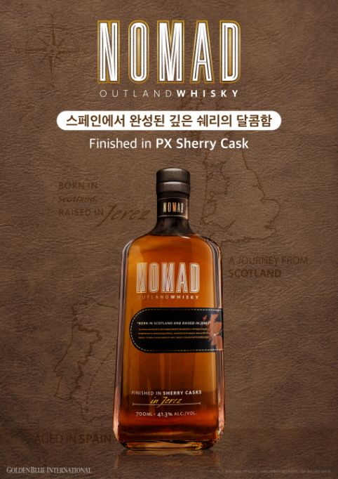 '노마드'는 달콤한 쉐리의 풍미를 느낄 수 있는 쉐리 피니쉬드 위스키로 지난 2022년 3월 스페인 곤잘레스 비야스와 계약을 맺고 골든블루 인터내셔널에서 국내에 독점 수입, 유통하고 있다.