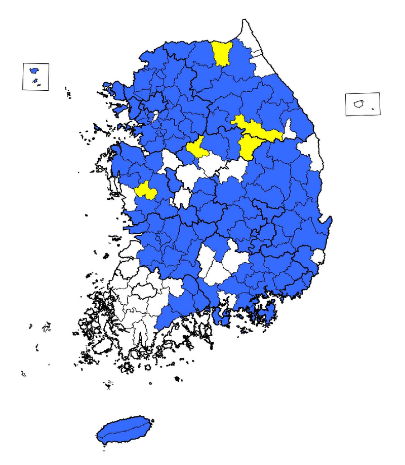 기상청의 가뭄지도에 따르면 4월 현재 제주와 서귀포, 부산 기장, 대구 달성, 경남 김해 등 29개 시군이 ‘관심’ 단계에 있다. 1개월 전망에서는 서울, 부산, 충북 영동, 경기 수원·성남·의정부·안양 등 29개 시군, 강원 춘천·원주·강릉 등 12개 시군이 ‘관심’ 단계로 나타났다. 2개월 전망에서는 충북 보은 등 7개 시군이 ‘관심’ 단계이며, 3개월 전망에서는 충북 영동이 ‘관심’ 단계로 분류됐다.