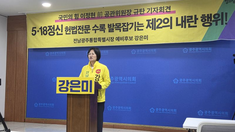 강 후보는 이날 기자회견에서 "국민의힘이 개헌안 공고를 두고 온갖 시비를 걸며 5·18 정신의 헌법 전문 수록을 또다시 방해하고 있으며, 불법 내란행위을 옹호하고 정당화하는 행보를 보인 국민의힘 이정현 전 공관위원장이 전남광주통합특별시장에 출마하는 것은 후안무치한 일이다"라고 밝혔다.