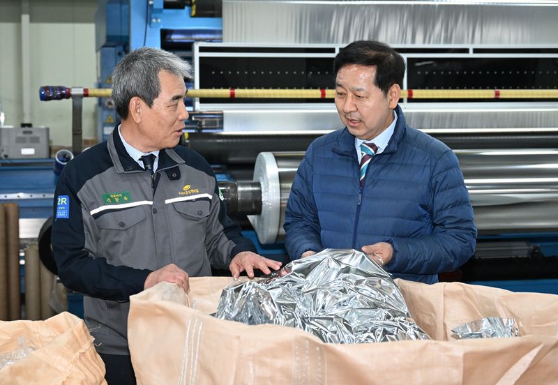 [파이낸셜뉴스] 구윤철 부총리 겸 재정경제부 장관은 9일 세종시에 있는 필름·비닐 생산업체 유상케미칼을 방문해 중동전쟁발 원자재 수급 애로 현장을 점검했다. 중소벤처기업부, 식품의약품안전처 관계자도 함께 했다.