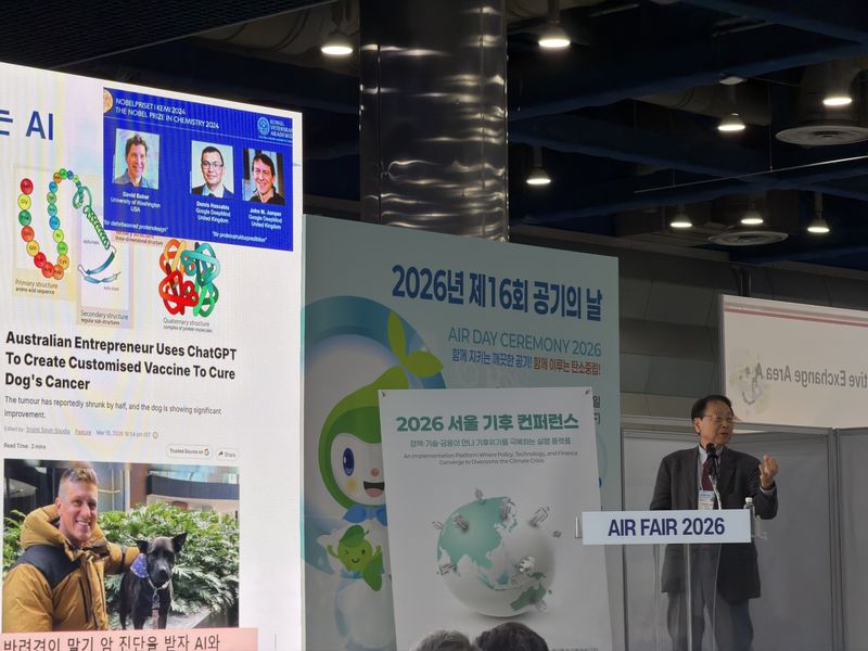 김진형 카이스트 명예교수는 9일 서울 강남구 코엑스에서 열린 '에어페어 2026'의 컨퍼런스에 참석해 이같이 말하며, AI가 기후 대응과 에너지 효율 개선을 동시에 이끄는 핵심 기술로 자리 잡을 것이라고 강조했다.