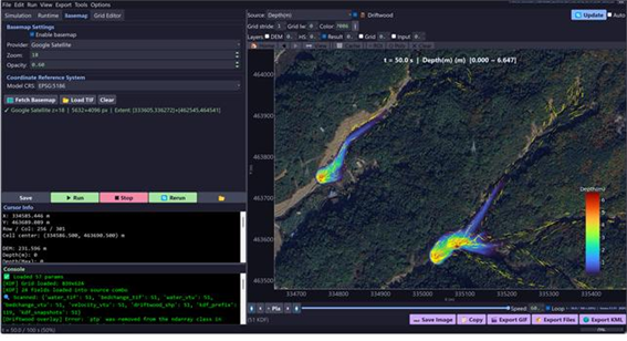 KIGAM-DF는 토석류의 발생부터 이동, 퇴적에 이르는 전 과정을 통합적으로 분석하고, 유목의 생성·이동·집적 과정까지 반영할 수 있도록 설계됐으며 현재 지속적인 고도화가 진행 중이다. 실제 지난 2011년 우면산 산사태에 의한 토석류 발생지와 2023년 토석류가 많이 발생한 예천군 일대에 적용한 결과, 약 85~90% 수준의 높은 예측 정확도를 확인했다.