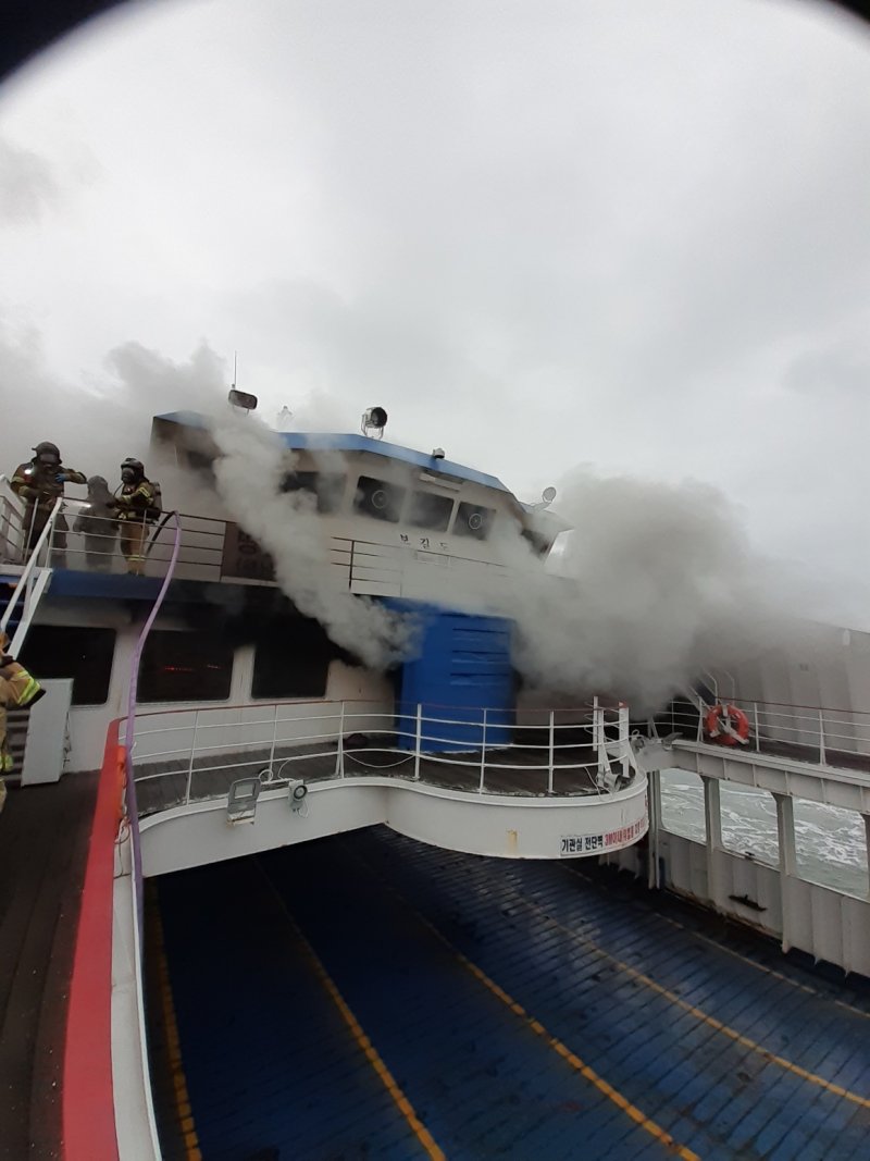 11일 전남소방본부에 따르면 전날 오전 7시 45분쯤 전남 해남군 송지면 땅끝항 여객선 터미널에서 621톤급 뉴장보고호 2층 객실에서 불이 났다.