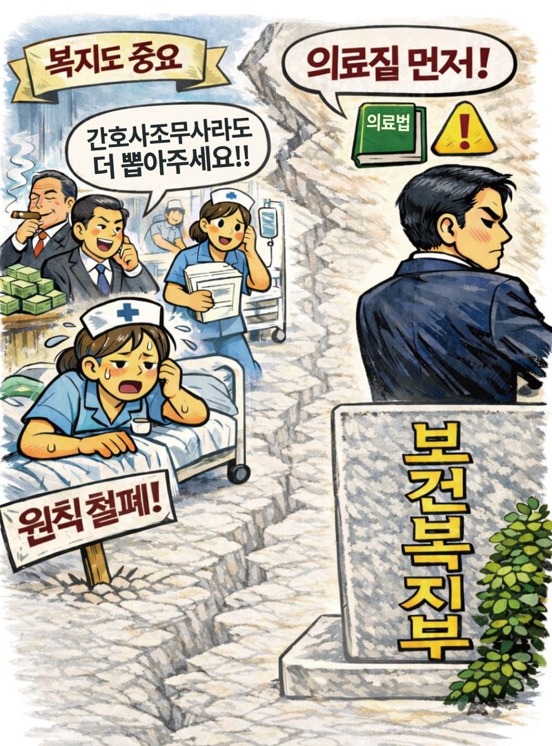 복지부는 대한종합병원협회에 보낸 답변서에서 "가산 제도의 목적은 단순히 머릿수를 채우는 것이 아니라, 전체 인력 중 숙련된 '간호사'의 비중을 높여 실질적인 의료 서비스의 질을 개선하는 데 있다"고 명시했다. 특히 정부가 현재 추진 중인 '간병 급여화와 연계한 의료 중심 요양병원' 개편 방향을 언급하며, 간호 인력의 전문성 강화는 타협할 수 없는 중장기적 정책 기조임을 분명히 했다.