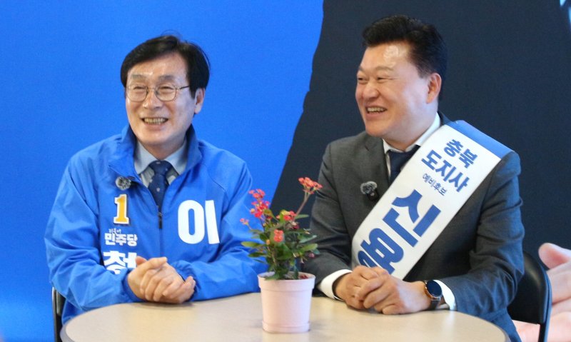 [청주=뉴시스] 연현철 기자 = 더불어민주당의 신용한 충북도지사 후보와 이장섭 청주시장 예비후보가 정책연대를 본격화하며 세 결집에 나섰다.