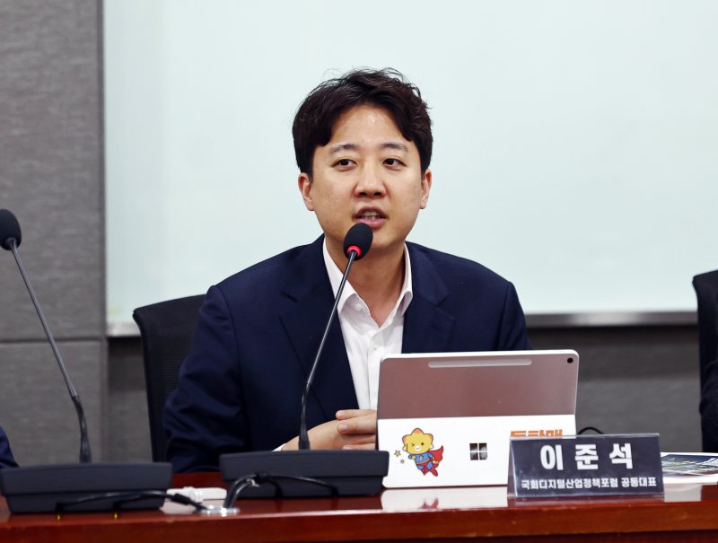 [서울=뉴시스] 김명년 기자 = 이준석 개혁신당 대표가 1일 오후 서울 여의도 국회 의원회관에서 열린 사이버 보안 정책 세미나에서 인사말하고 있다. 2026.04.01. kmn@newsis.com