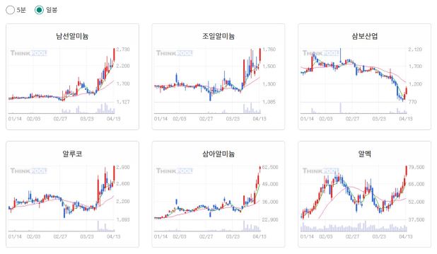 ※ [알루미늄] 이슈 관련 종목 : 남선알미늄, 조일알미늄, 삼보산업, 알루코, 삼아알미늄