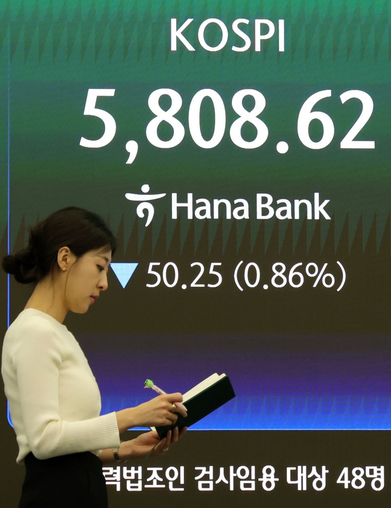 [파이낸셜뉴스] 미국과 이란의 종전 협상 결렬 소식에도 코스피가 개인 투자자의 저가 매수세에 힘입어 5800선에서 마감했다. 13일 한국거래소에 따르면 코스피는 전 거래일 대비 50.25p(0.86%) 하락한 5808.62에 거래를 마쳤다. 이날 지수는 전장 대비 2.08% 하락한 5737.28에 출발했다. 장 초반 5730선까지 하락했지만 낙폭을 만회하면서 5800선 회복에 성공했다.