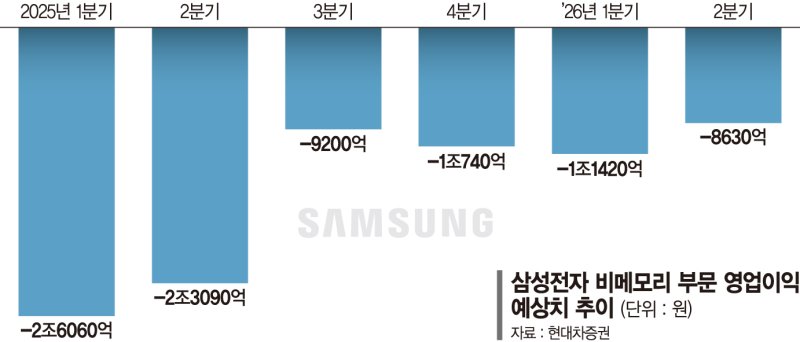 증권가에 따르면 삼성전자 비메모리 부문 영업손실은 지난해 1·4분기 2조6060억원에서 같은 해 3·4분기 9200억원 수준까지 줄었고, 이후 일시적으로 확대됐던 손실도 다시 감소세로 돌아섰다. 올해 1·4분기에는 1조1420억원 수준, 2·4분기에는 8000억원대까지 축소될 것으로 추정된다.